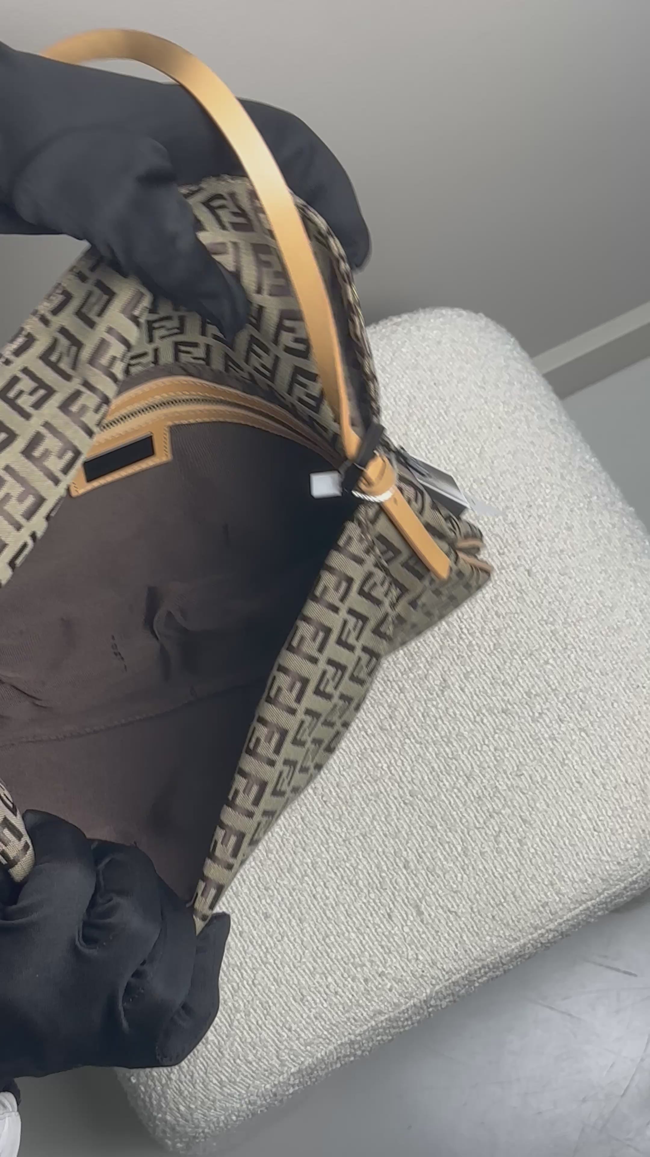 FENDI ZUCCHINO CANVAS DOUBLE FLAP SHOULDER BAG IN BROWN