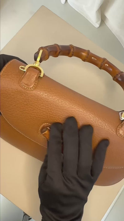 GUCCI GRAINED CALFSKIN BAMBOO NIGHT IN CAMEL